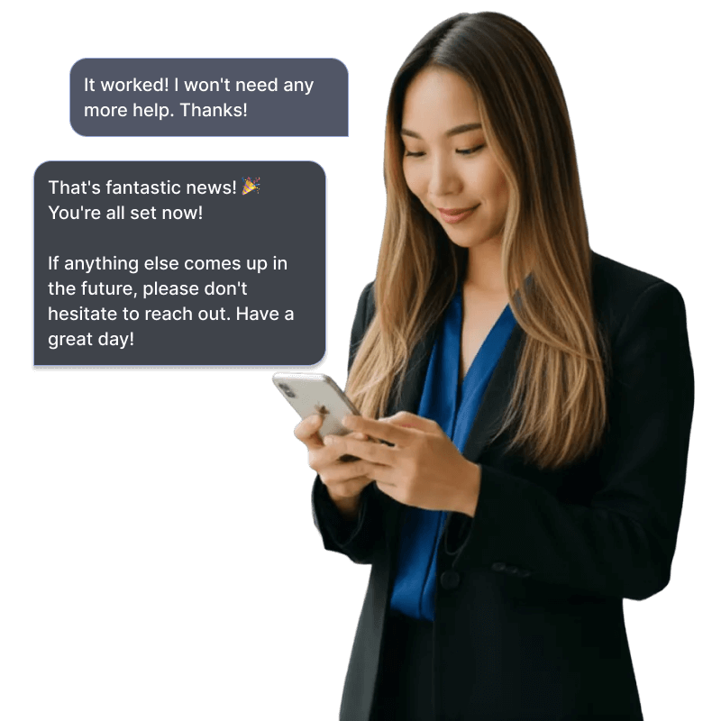 Guide new users through setup, forms, or program details automatically — ensuring every customer gets value faster, without adding pressure to your team.